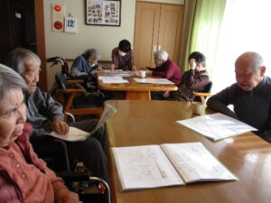 皆さんで懐かしの唱歌や歌謡曲を歌いました
