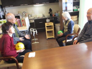 本日も室内でボール遊び、イクササイズと脳トレをして楽しく過ごされました。