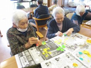 春らしい貼り絵を製作中