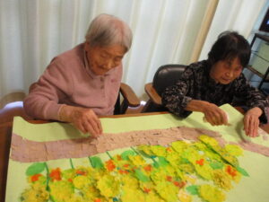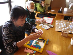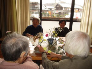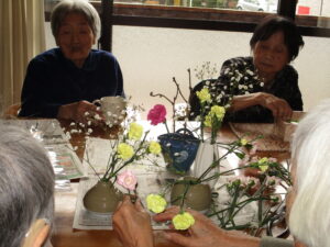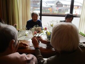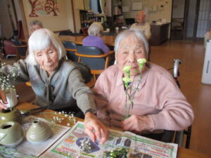 今日も昼食の準備、花を飾り付け、洗濯物を干したりなどを手伝って下さました。そして、皆様色々な活動をして楽しんでおられます。