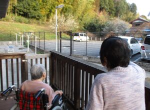 テラスから外の梅をみたり、散歩に出かける方もおられました