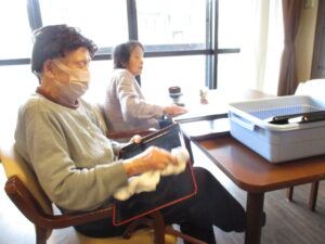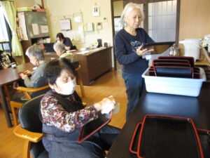 昼食後のゆったりした時間、みなさんでお膳拭きをしてくださいます。