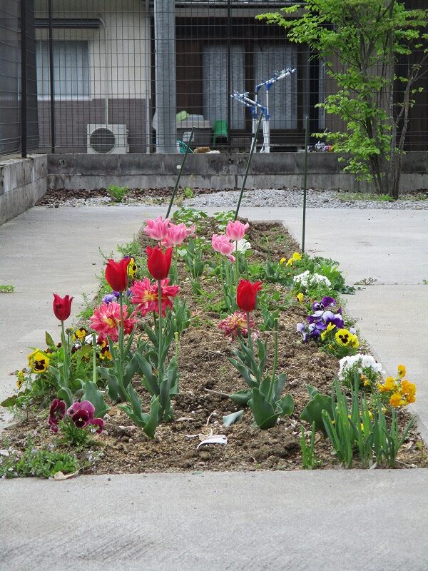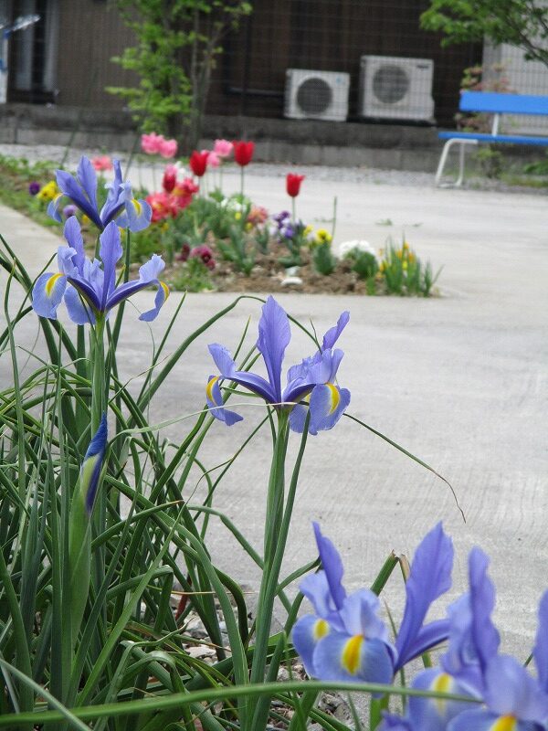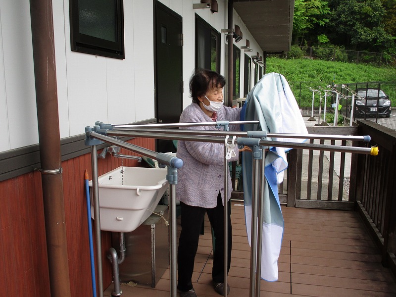 綺麗な花を見ながら、洗濯物干し。お天気も良く、気持ちが良いですね😊