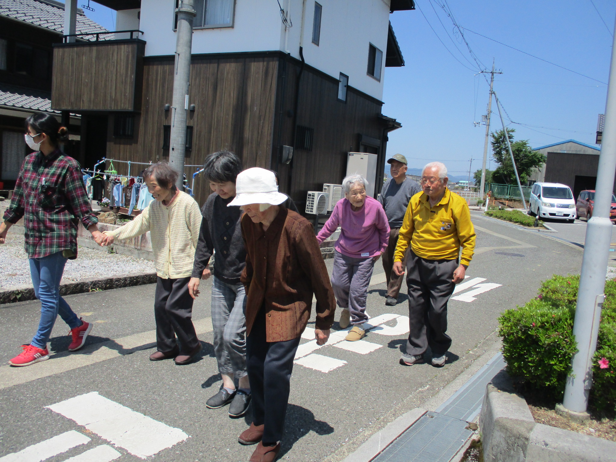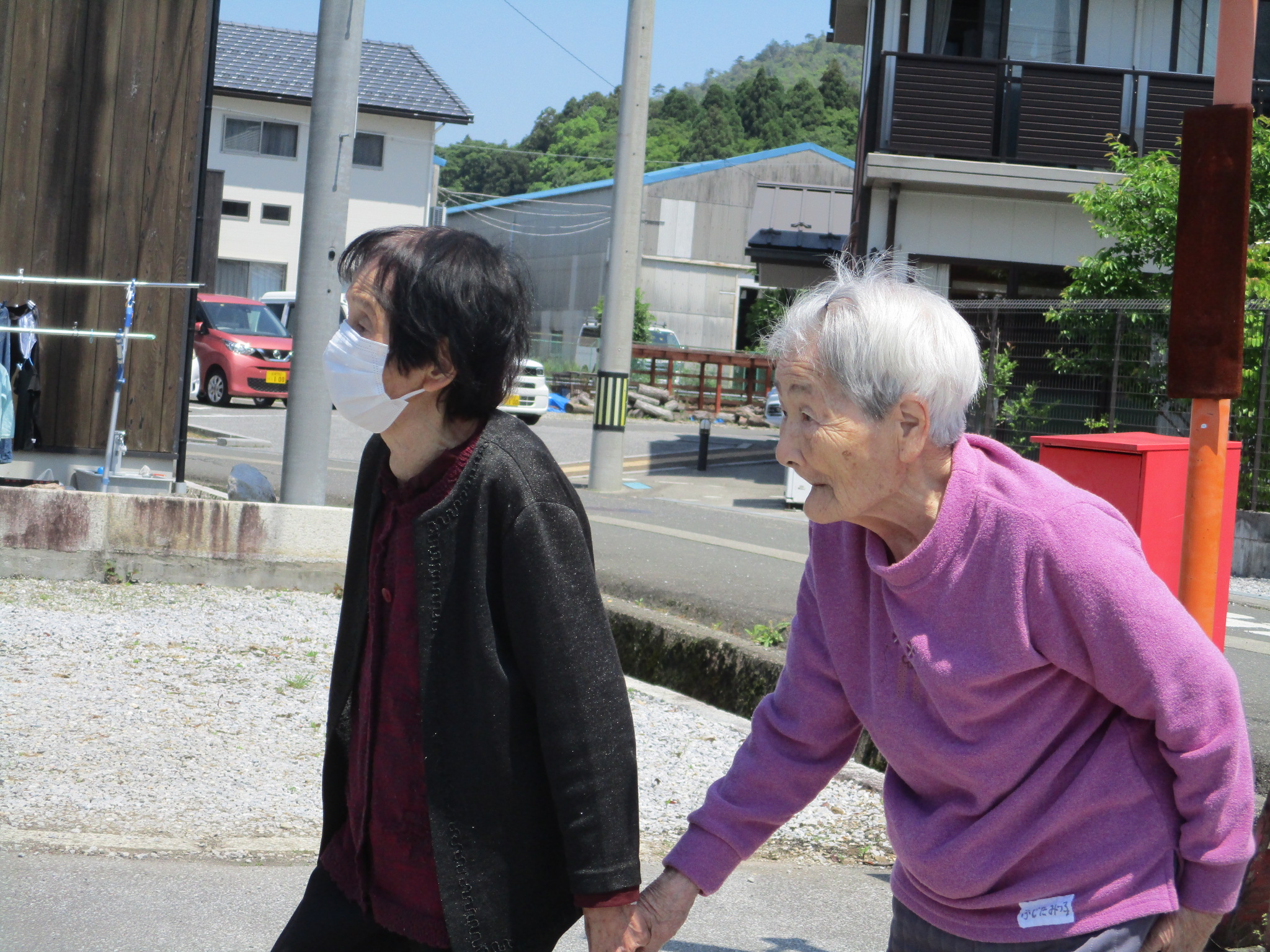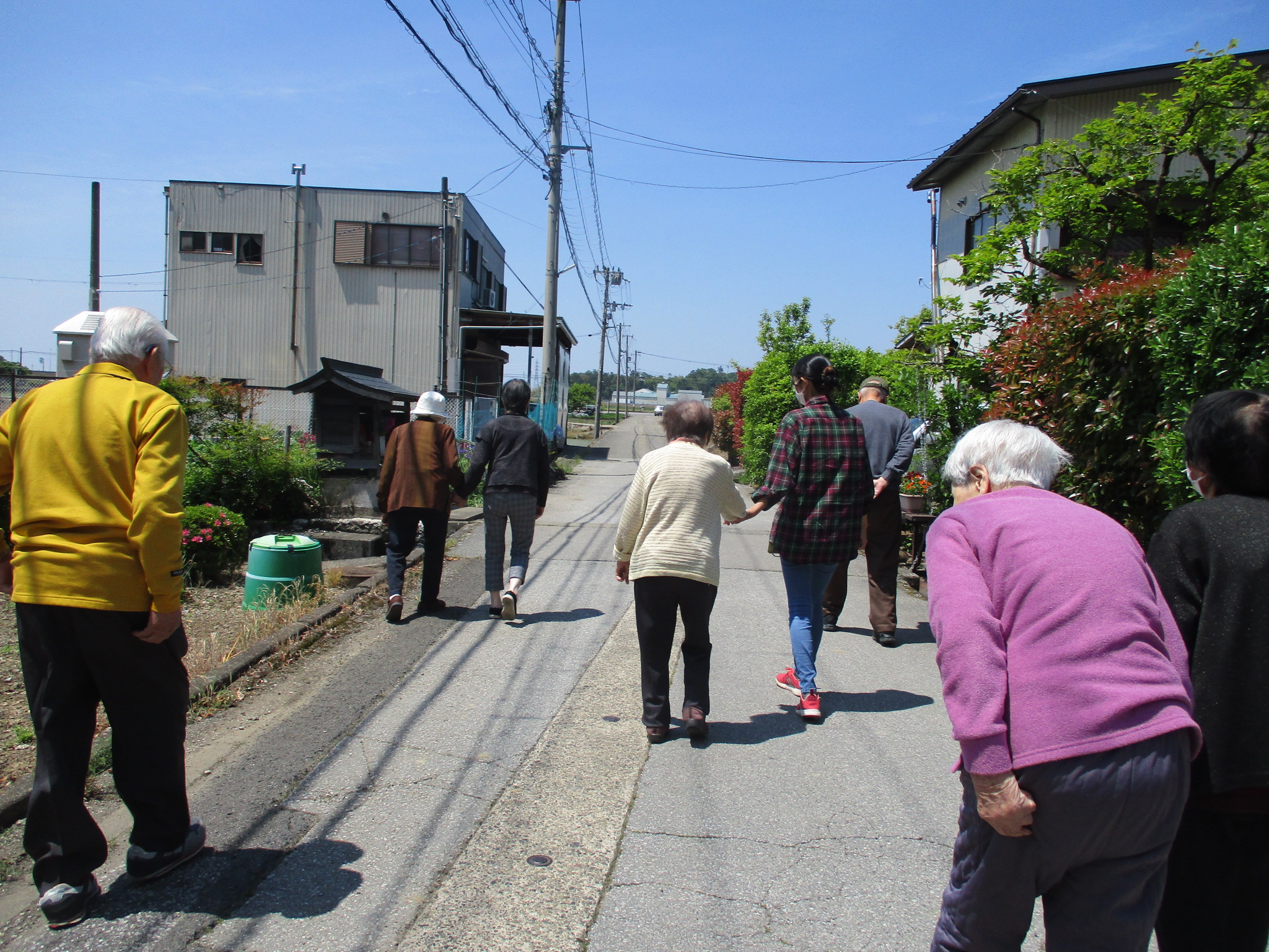 晴天でしたから近くのお地蔵様まで散歩に行かれました。