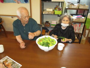 利用者様が裏山の梅の木から、梅の実を収穫してくださいました。