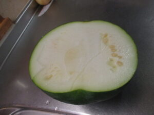 頂きましょう!と切ったところ、なんとまだ全然熟していませんでした。真っ白!。