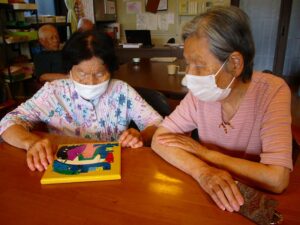 パズルや洗濯物たたみ。一緒にしておられます😊