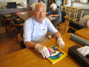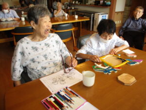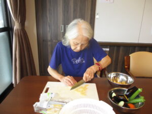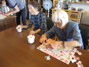 野菜を収穫する方・調理をする方・パズルをする方、それぞれ過ごされています。