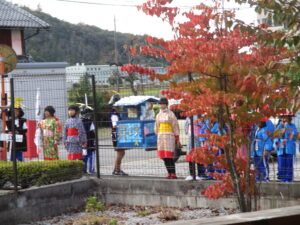 今日は小谷城のお城祭りがありました。小学生が武将やお姫様に仮装してまんてんの前を