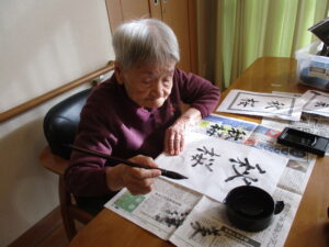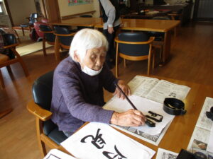 文化祭に出品する作品を書かれていました。何度も練習を重ねて力のある字が書けましたね。 木