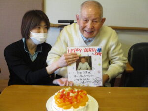 本日もお誕生会をさせていただき、とてもいい笑顔で過ごしてもらえました