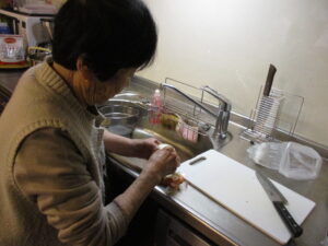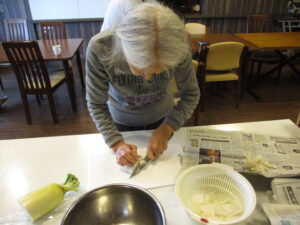 手分けをしてお味噌汁の具材を処理中です!!