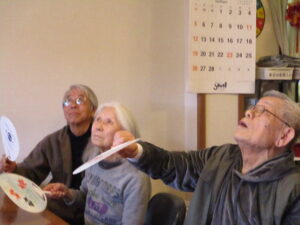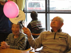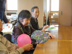 午後には、団扇と風船で羽子板の様な遊びを皆さんで楽しまれました🎈