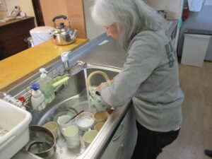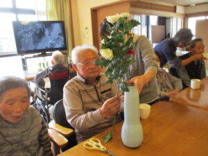 後片付けを手伝って頂いたり、男性の利用者様に花を活けて頂いたり💐