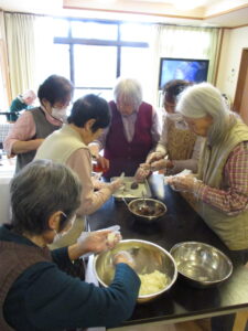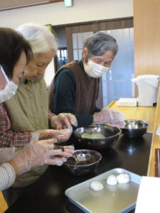 午後からは、ぼた餅作りを皆さんで作って下さいました。