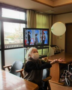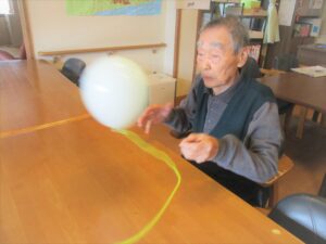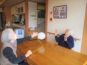今日は風が強かったですよね。散歩には行けなくて室内で風船バレー🎈をして過ごされました。