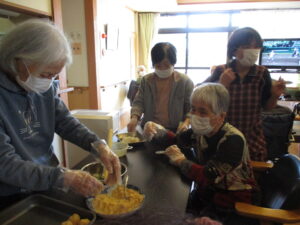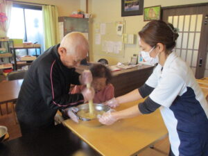 皆でぼた餅を作り、お花見をしながらいただきました💕💕 …ゆう…