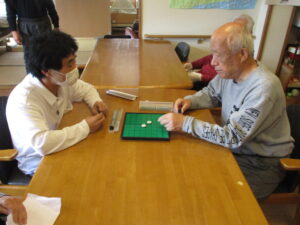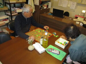 皆さんのんびりと過ごしておられます。脳トレも真剣に。