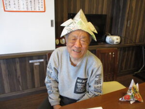 自分で紙兜を作って被った姿です。とても素敵ですよね。