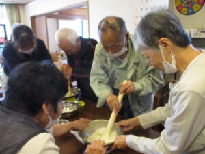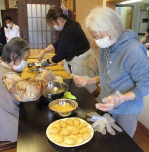 おやつタイムに、皆様がご協力しておはぎを作って頂きました。