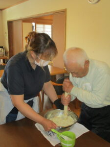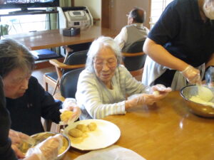 今日のおやつタイムにぼた餅作って頂きました。皆さん美味しいと良く喜ばれました。