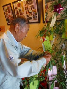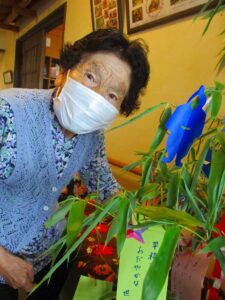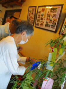 短冊に願い事を書いて、笹に飾られました。