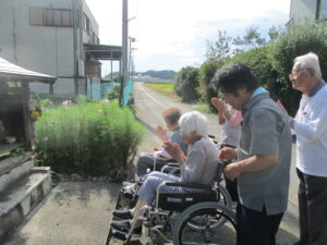 近くのお地蔵様までお参りに出かけました。 皆さん何をお願いしたのでしょうか☺