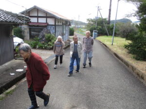 皆さん、元気にお散歩に出かけられました、頑張って歩かれ 近くに神社に!!