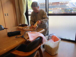 天気が良く、よく乾いた洗濯物を、″手伝うわ、仕事させてもらう„と