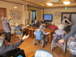 皆さん、体操、世間話をしたりいろいろな活動に参加しておられます。