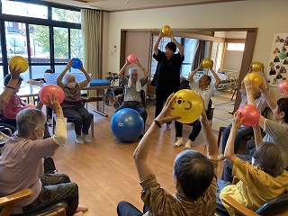 暑い日が続きますが室内でボールを使って運動をしておられます。s