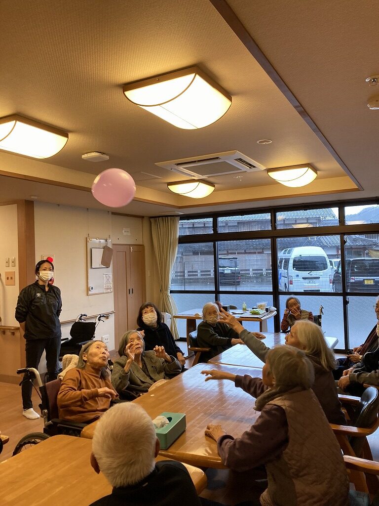 お手伝いして貰いました。風船バレーで楽しまれてるごようすです