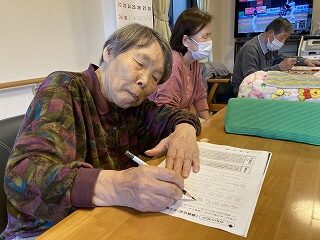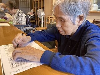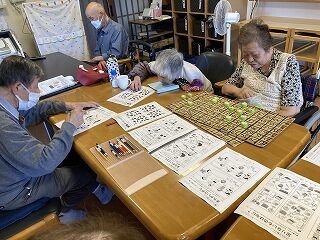 本日のご様子です。牛乳パックのリサイクルして頂きました。数字合わせ、脳トレに取り組まれ↓ました。