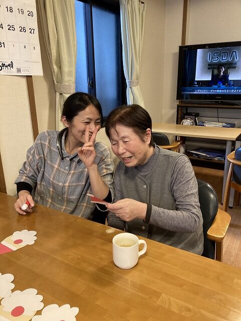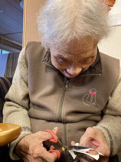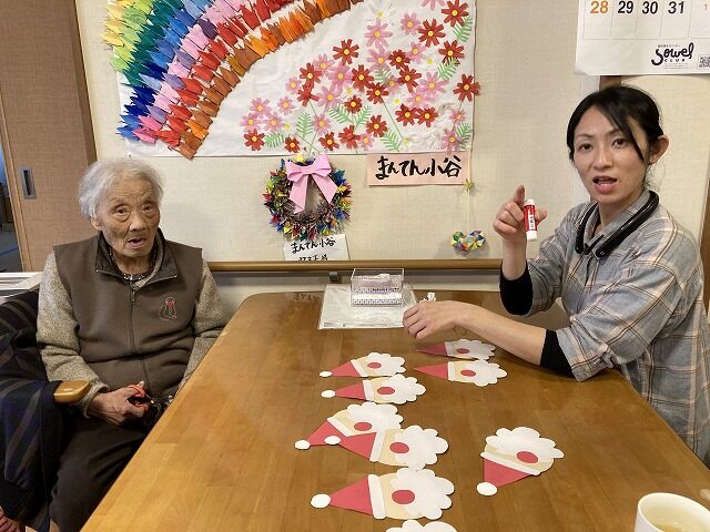 12月20日のまんてん小谷です。職員と一緒にクリスマス飾りを作ってくださいました。