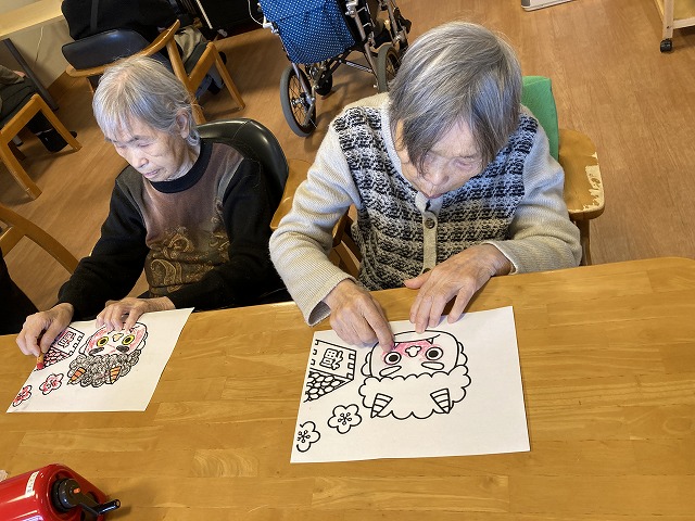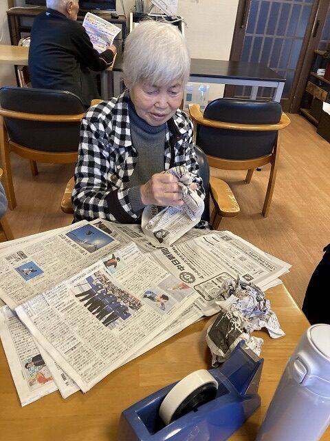鬼の似顔絵を塗ったり新聞紙を丸めたりしました😄