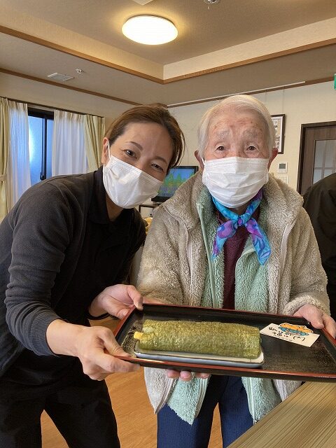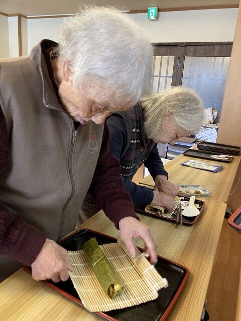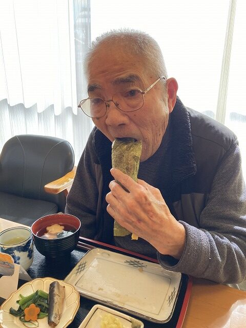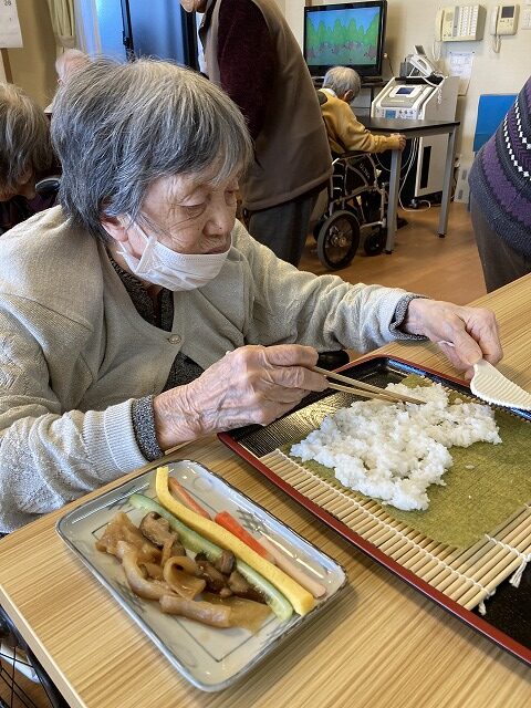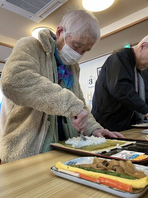 昼食は恵方巻をご自分で巻いて♪