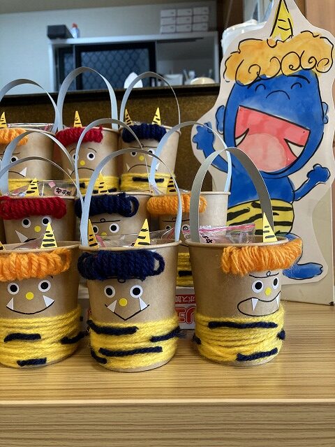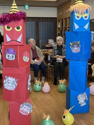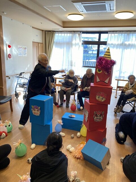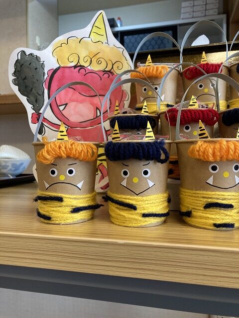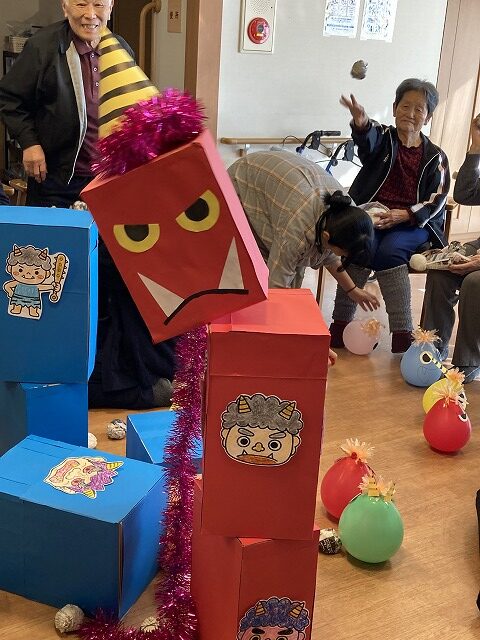 午後は鬼に向かって全力豆まきです😄