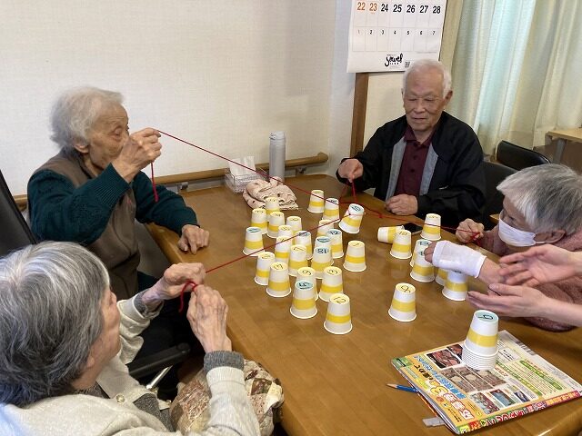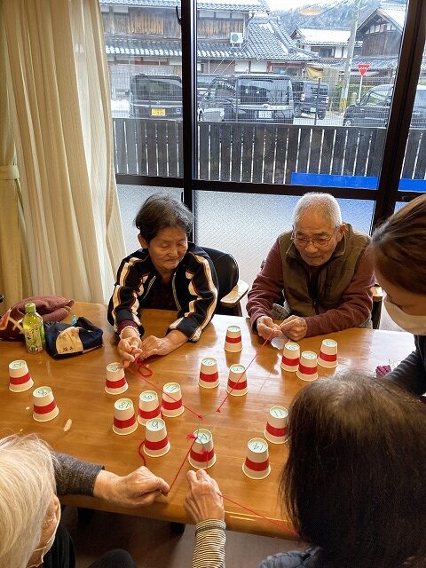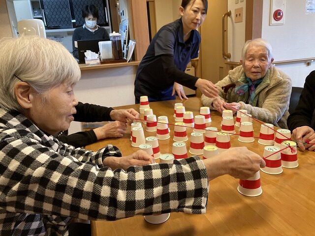 本日のまんてん小谷のご様子です😄レクレーションの様子です。みんなで協力して紙コップ数字とり、盛り上がりました。