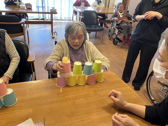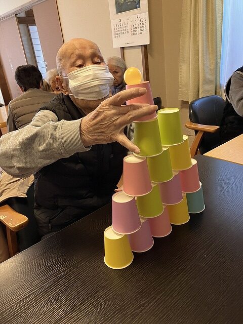 紙コップを使ってのレクリエーションです😄