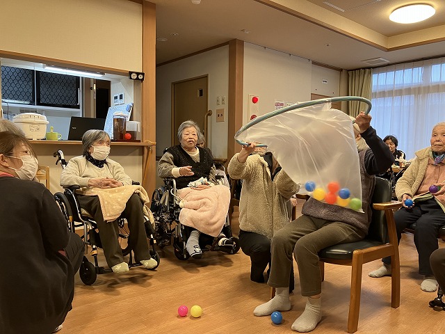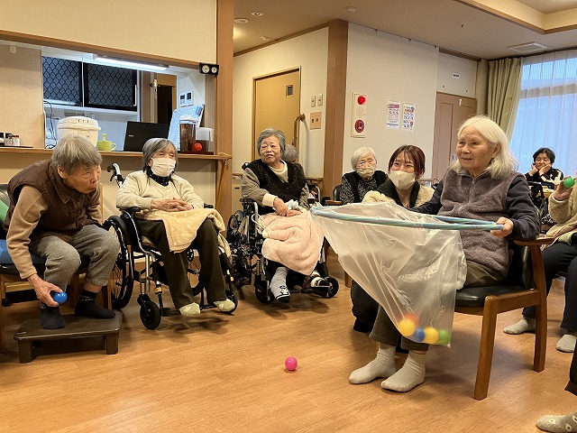今日のレクリエーションはボール飛ばし&キャッチでした(^^♪