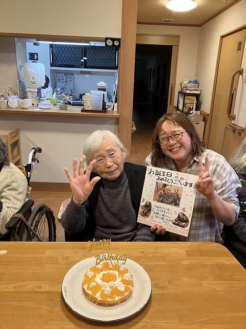 今日は、誕生日会をしました。手作りケーキで皆さんとお祝いをしました