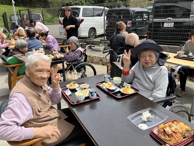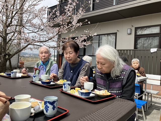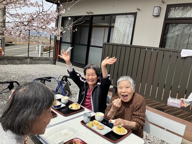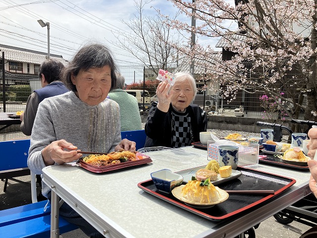 本日はグループホームの皆様と一緒に昼食にお花見をしました♪
