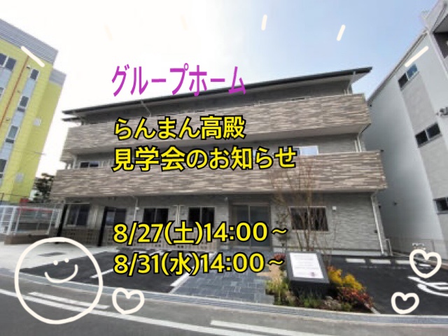 下記日程において8月内覧会・見学会を開催いたします🍀「とりあえず施設の雰囲気だけ知りたい」という方も歓迎です。是非この機会をご利用下さい😊