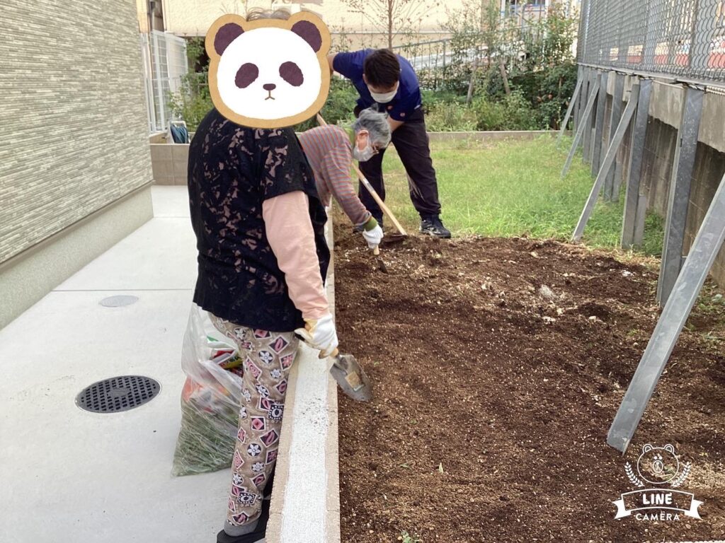 畑の土台作りを行いました。またご利用者と一緒に買い物にも行ってもらいました。今はまだ花や植物を植えていないですが、どんな植物を植えるか、乞うご期待。