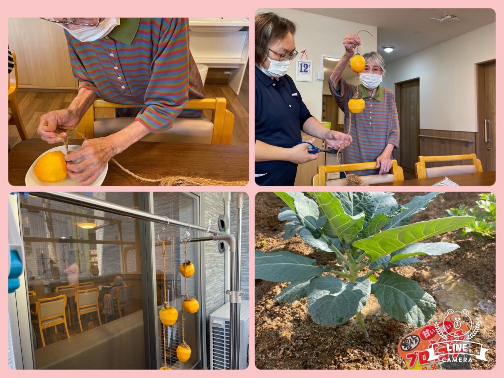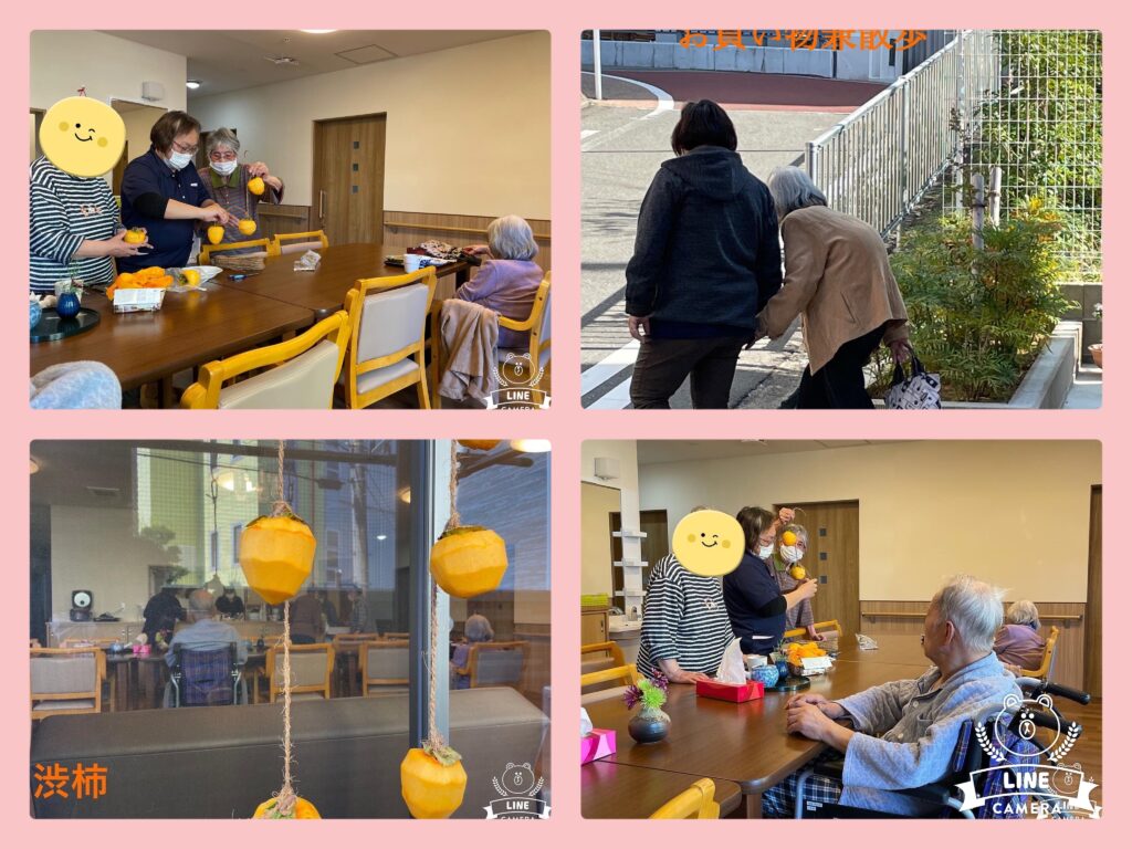 散歩ついでに渋柿を買ってきて頂き、また他のご入居者様が、昔の知恵で渋柿を渋柿を吊るしてくれました^_^。出来上がるのが、楽しみです。naka