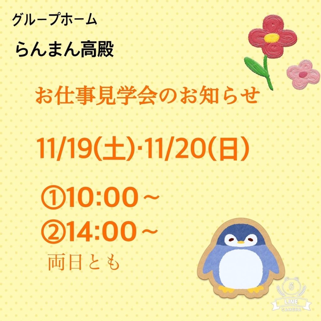 ✋11/19(土)・11/20(日)職場見学会を開催します。『働いてみたいけど…まずはどんな職場なのか知ってから』検討してみたいという方に、ピッタリです。🤗