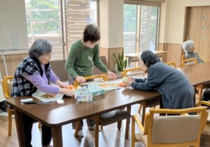 野菜の皮むきを皆さんでして頂きました。本日も元気でお過ごしです。