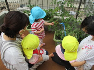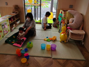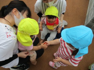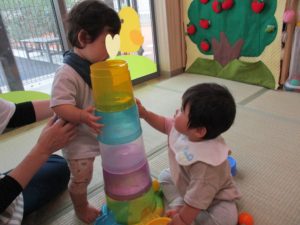 一つ大きいお姉ちゃんの様子が気になるひよこ組さん。