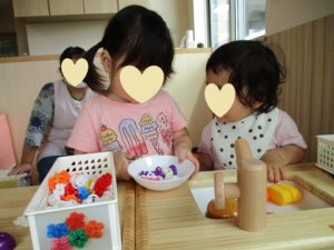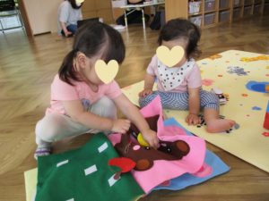 先生と「どーぞ」「ありがとう」のやりとりを楽しみました(*^^*)!