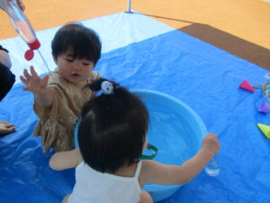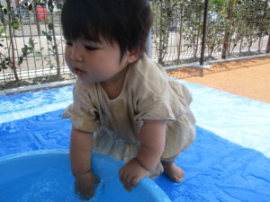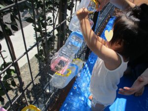 今日も天気が良かったので園庭で水遊びをしました🌤